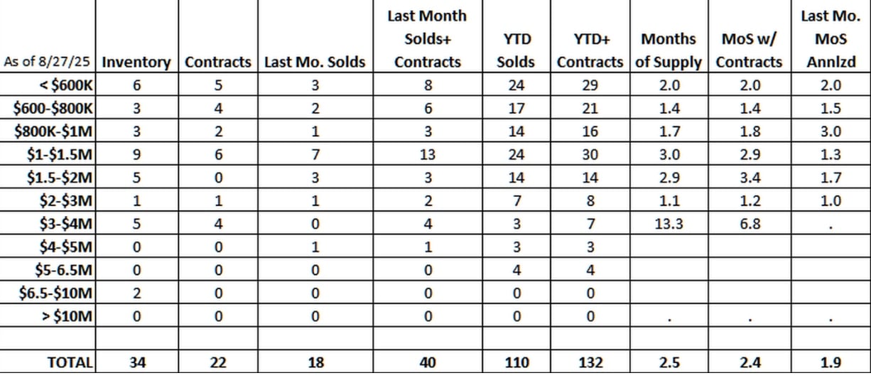 Like our single-family homes, we have lower sales due to lower inventory. Right now, we only have 34 condo listings on the market. Of those 34 listings, all but 2 of them are under $4 million. Interestingly enough, the two condos over $4 million are really 4 condos.