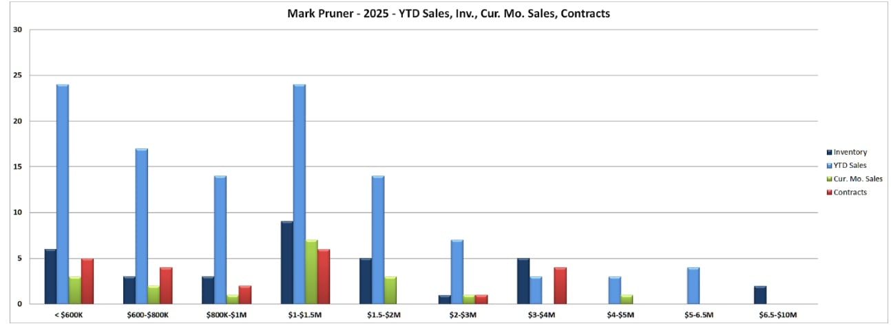 This year we are blowing those records away. Our average price is $1.42 million, up 6.8% from last year. Our average price/sf is $769/sf, up 10.0% from last year. Part of that big jump is a change in the mix in what is selling this year with 17 sales over $2 million this year.