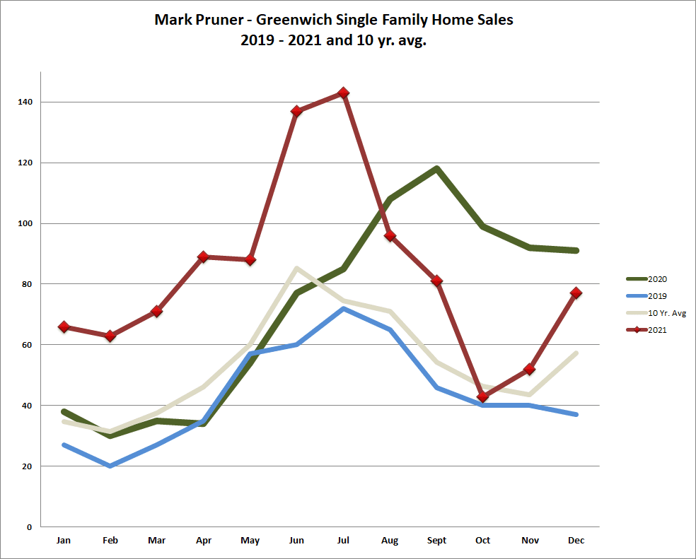 We broke 1,000 sales in 2021, a goal that most people thought we would never see, and we did it on the last business day of 2021. Pre-Covid, our 2019 sales were only 528 sales, so we are looking at sales up 90% in just two years and we were up 16.8% this year over 2020; a year when many towns outside of Greenwich saw lower sales this year.
