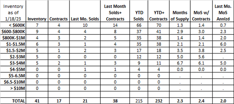 You can see some of this investor interest, when you look at our December sales. December is a prime time to realize tax free capital gains, when these gains are offset by the capital losses, that too many investors in the stock and bond market experienced. In December 2022, 48% of our condo sales were under $600,000. The nice thing about this price range is that it is one of the more liquid price ranges. Put a condo on for market price in this market and it won’t last long.