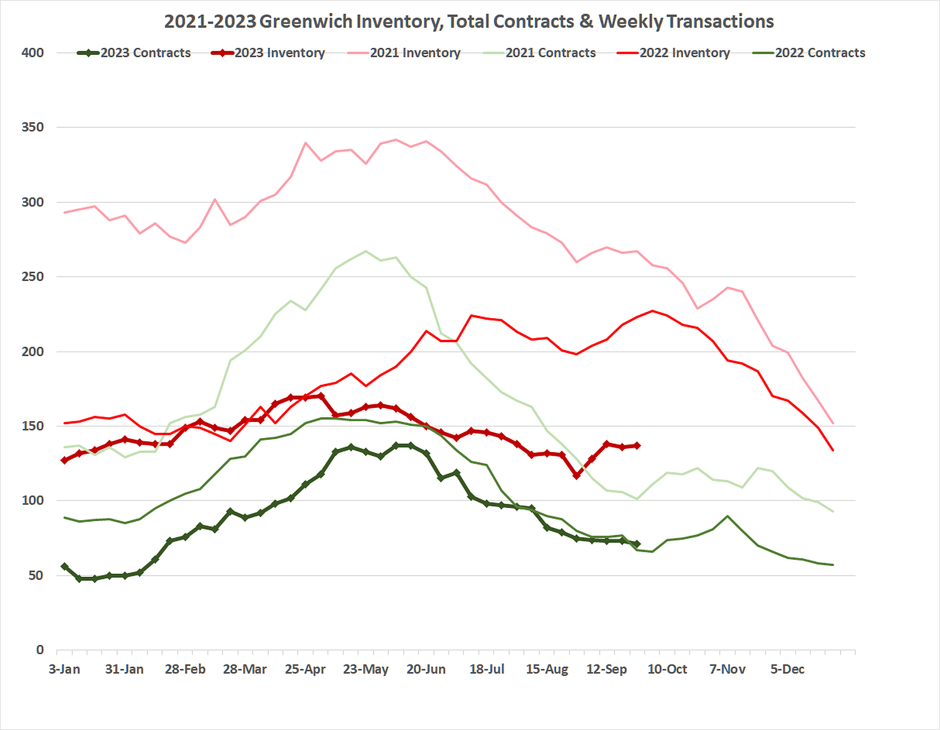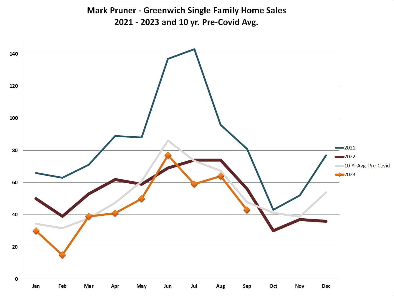 In September 2023, Greenwich had more sales over $6.5 million dollars than we had under $1 million. We had 5 sales over $6.5 million, including sales of $22.9 million and $14.7 million. For the third quarter, we had 5 sales over $10 million and a total sales volume of $221 million for the quarter. Our third-quarter sales volume this year beat every year of the last four years for total volume with the exception of the record-breaking year of 2021.