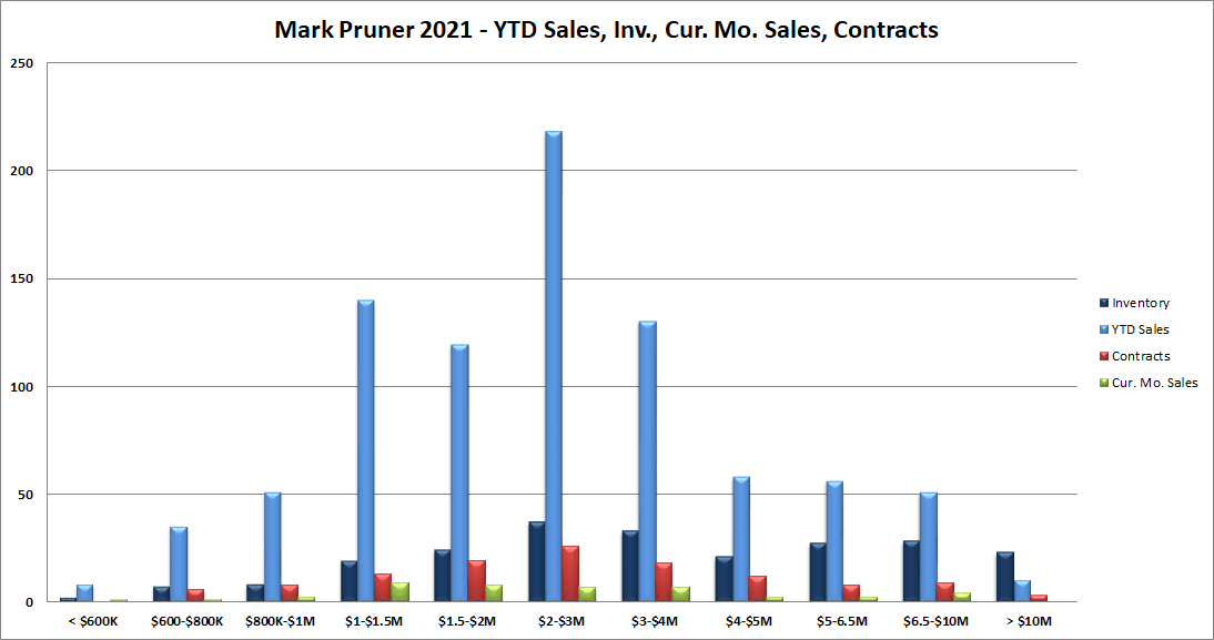 In 2019, we had 120 listings from $2 – 3 million, now we have only 37 listings. Lower inventory and higher sales bring months of supply way down. From $2 – 3 million we only have 1.7 months of supply, while only two years ago, this price range had 11.9 months of supply. Said another way, we went from almost a year of supply to less than 2 months of supply in the last two years.