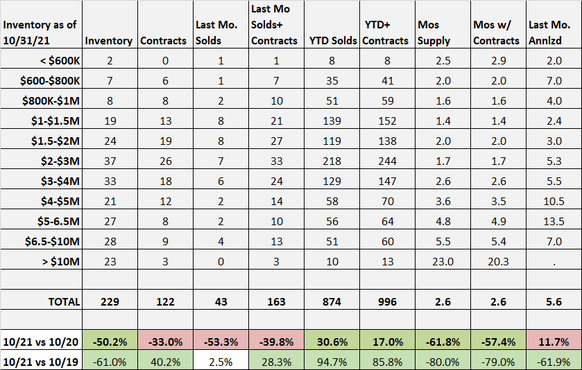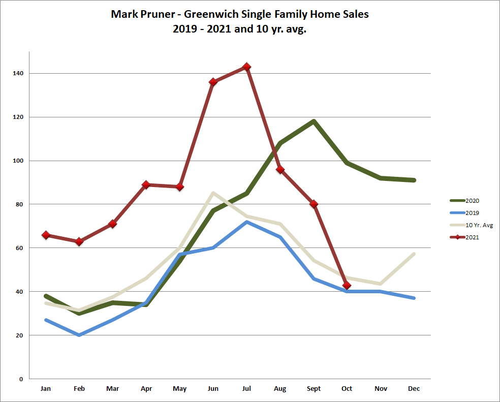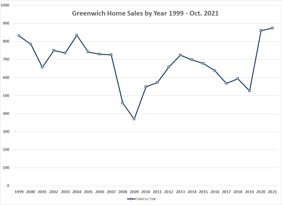On October 23rd, 2021, we matched our sales for the full year 2020, even as single-family home sales in Greenwich dropped 46% compared to September. So far this year we have had 875 sales which make for a new all-time record, already exceeding last year’s 861 total sales with two months to go in this year.
