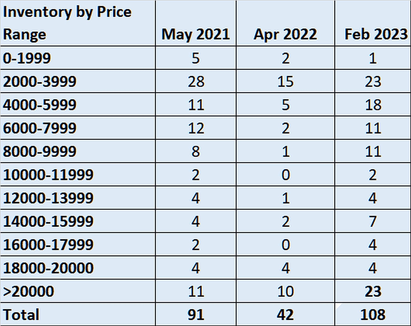 The other bookend is our present inventory over $20,000 per month which is exclusively single family homes. In May of 2021, we had 11 listings over $20,000 per month. These are our larger homes, usually on one or more acres with amenities like pools and tennis courts. Today we have more than double that number of listings in inventory with 23 beautiful houses waiting to be rented. If you further break down our over $20,000 rental listings, what you find is that half of them are between $20,000 and $30,000 17% are between $30,000 and $40,000 and the remaining third is above $40,000.