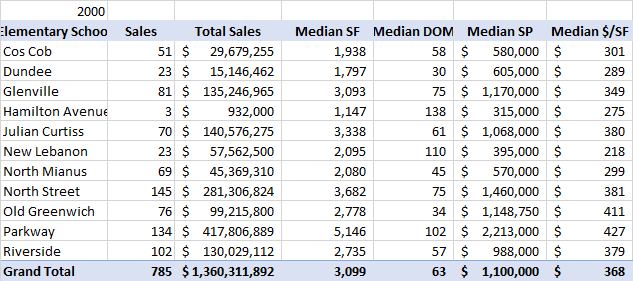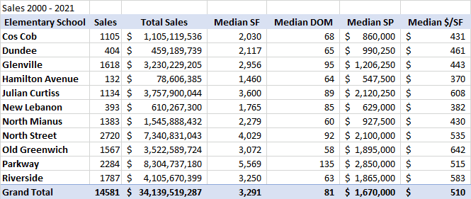 If you look at total sales dollars, the biggest increase was the International School at Dundee. This increase is a little deceptive in that Dundee is a magnet school and many of the students get in by lottery from all over town. However, when they redistricted, the Old Greenwich elementary school district, more than 20 years ago, the properties on the north side of the old OG school district were redistricted to Dundee. These students got into the very popular international baccalaureate program at ISD by right.