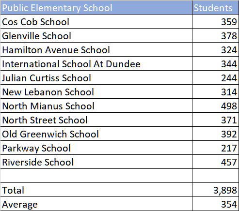 public-edsight, which by the way has a lot of useful information) the 2021-2022 enrollments of Greenwich public elementary schools are:
