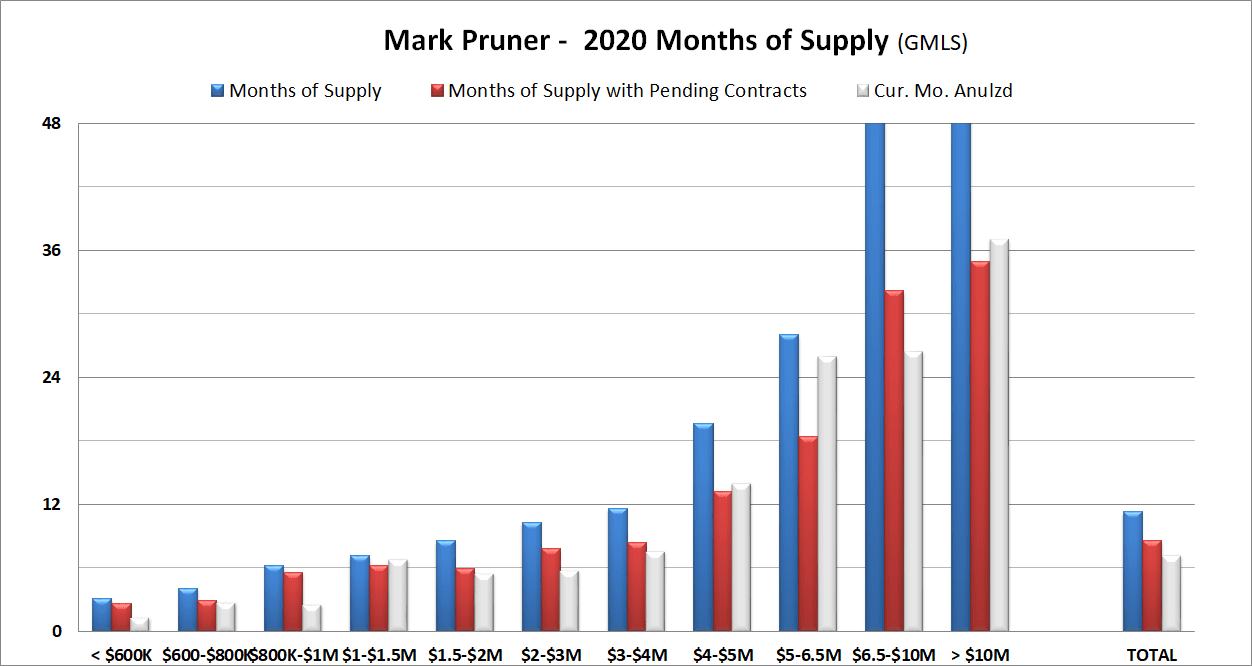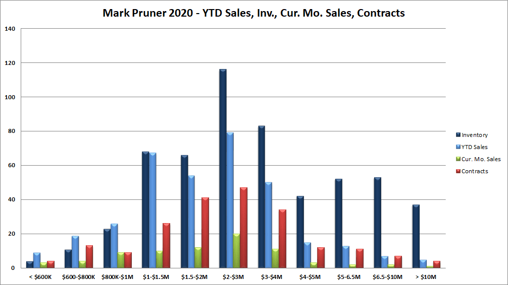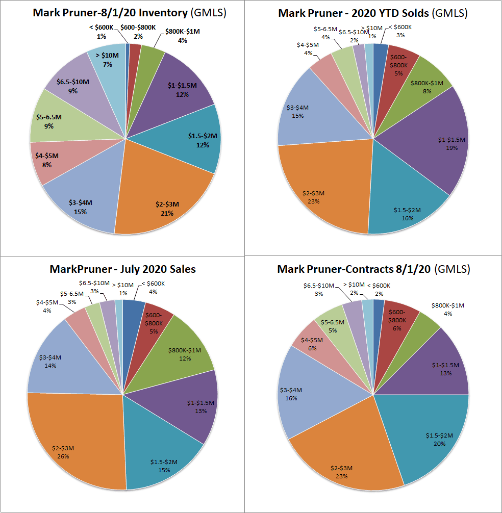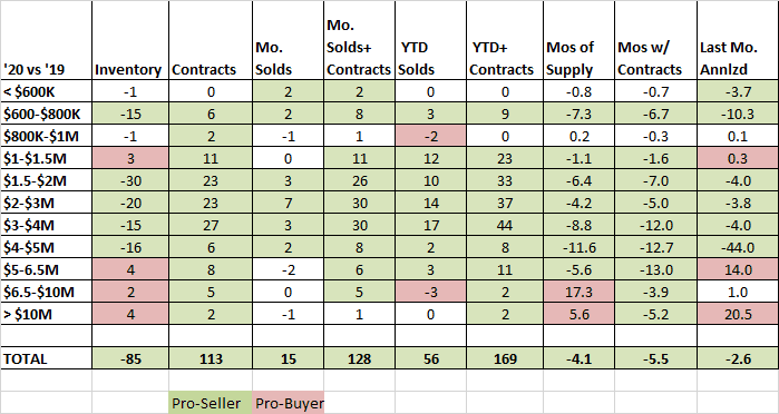 Lots of people and the press focus on what is happening to the average sales price of houses and that is not a good number to look at in Greenwich if what you are trying to do is to see where the overall market is going and the median price is only a little better. Most years, the change in the average price is not due to changes in overall market demand, but due more to the mix of what is selling. Given the broad increase in sales and contracts, 2020 may be the exception to that rule as we are seeing an increase at most price ranges, but for the moment other price change indicators do not agree.