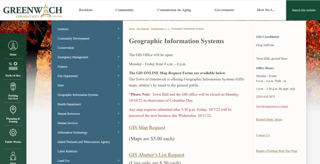 If you are looking for property info, head down to the basement of Town Hall. At the bottom of the main stairs is the Geographical Information Systems office. Bring your field card with it’s address and Tax ID number and Kerry will help you get a printout of dozens of layers of information from thetopography, to stone walls, ponds and streams, wetlands, driveways, bridges and lots of useful information. Alternatively, like the land records, you can use the GIS online order form. In addition, to the GIS map you can get an aerial map, both will cost you five bucks.
