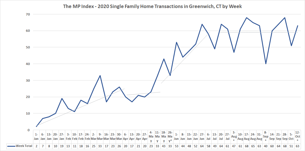 Total 2020 Greenwich House Sales and Contracts by Week