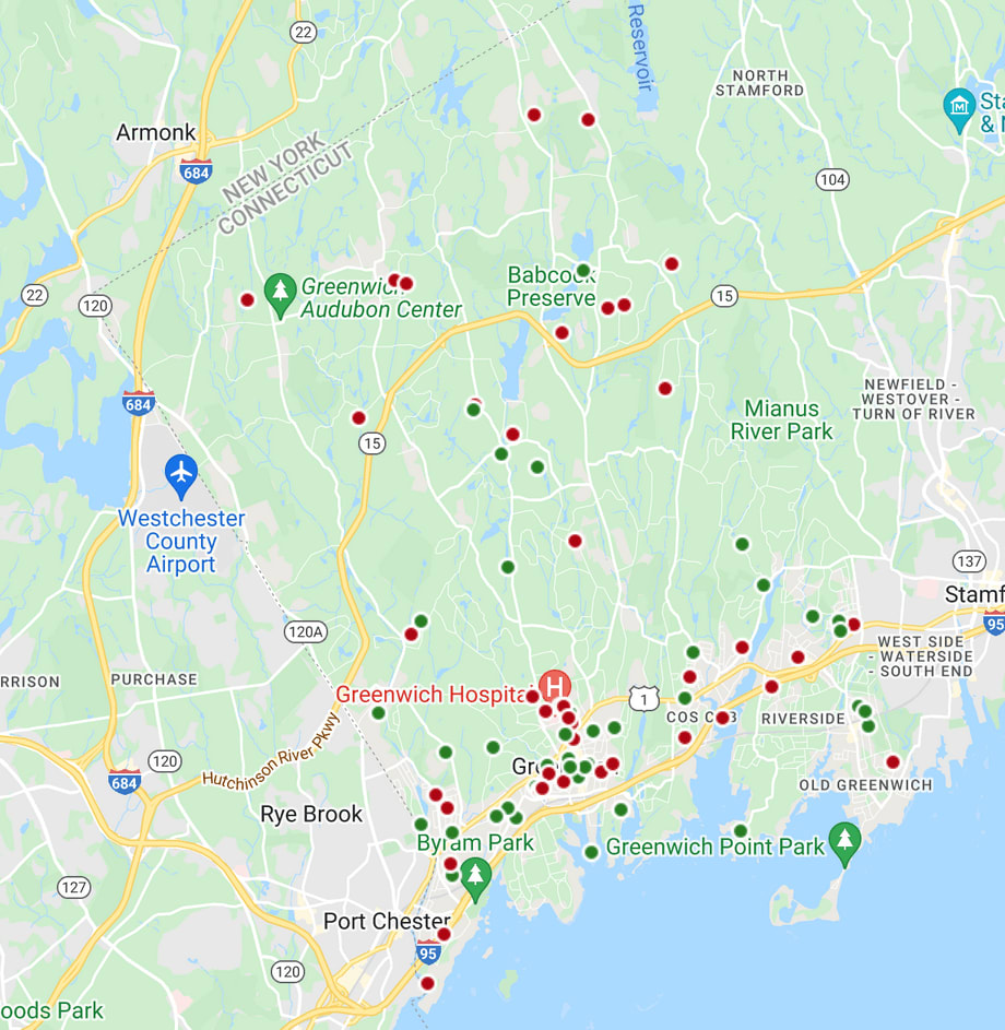 These are not all the rentals in Greenwich. Under $2,000 the majority of listings are done privately; either listed in the newspaper or put on Craigslist. Under this price we have between 100 and 150 rentals per year on the GMLS in a normal year. The units available under $2,000 include everything from a one-room-garage apartments to smaller condos throughout town. If a place is livable in Greenwich and listed for under $2,000/mo. it goes pretty quickly.